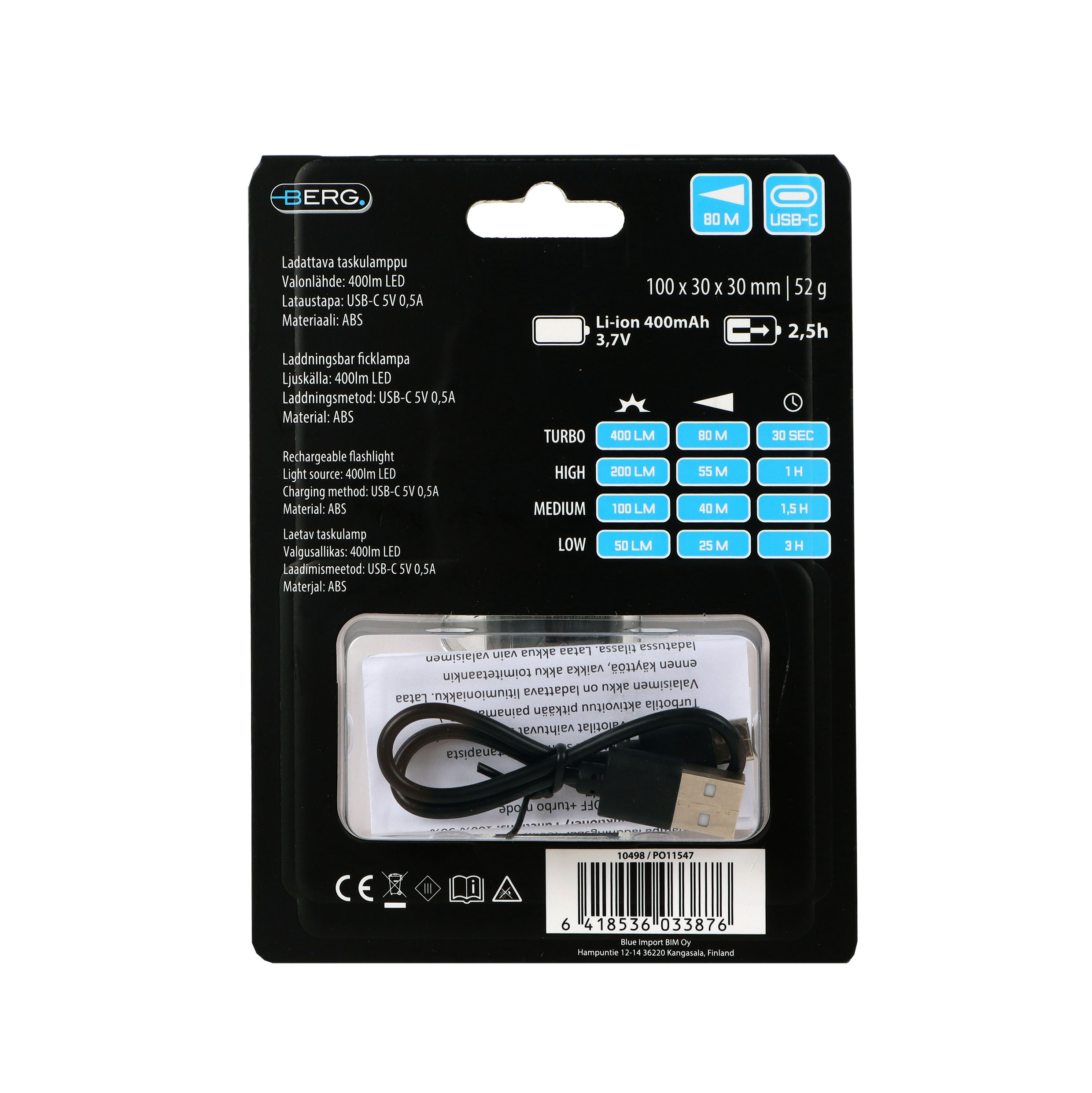 Berg taskulamp, laetav, mini, 400 lm, hall