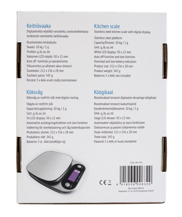 • 3 g täpsus kuni 10 kg