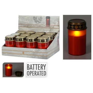 • Vilkuva LED-tulega kalmuküünal, mis jäljendab klassikalist leeki